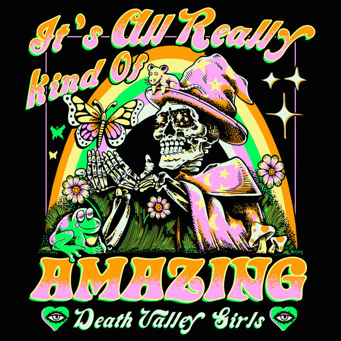 In these tumultuous times, it’s easy to forget that our natural state isn’t meant to involve chronic anxiety, fear, depression, or boredom. We all could use a reminder that our default setting as human beings should be one of hope, wonder, and love. Death Valley Girls’ ongoing mission is to use their scorching blend of garage punk, communal music, fiery riffage, and desert psychedelia as a vehicle for reconfiguring our perception and tapping into the beauty of the human experience. On their latest single, “It’s All Really Kind of Amazing,” Death Valley Girls continue their mystical quest for transcending the mire of our modern reality with divine rock n’ roll mantras, goosebump-inducing hooks, and Bonnie Bloomgarden’s impassioned vocal performances. While the band built their reputation on sweat-drenched, electrically charged anthems, “It’s All Really Kind of Amazing” delves into their more recent penchant for Larry Schemel’s chiming guitar chords, Bloomgarden’s nimble electric piano lines, big choral hooks, and intoxicating layers of instrumentation. Further bolstered by Rikki Styxx on drums, Emily Retsas on bass, and the gang vocals of Little Ghost, Pickle, and Kelsey Whatever NBD, the newest entry into the Death Valley Girls songbook exudes the aura of a tight-knit collective in the throes of ecstasy.